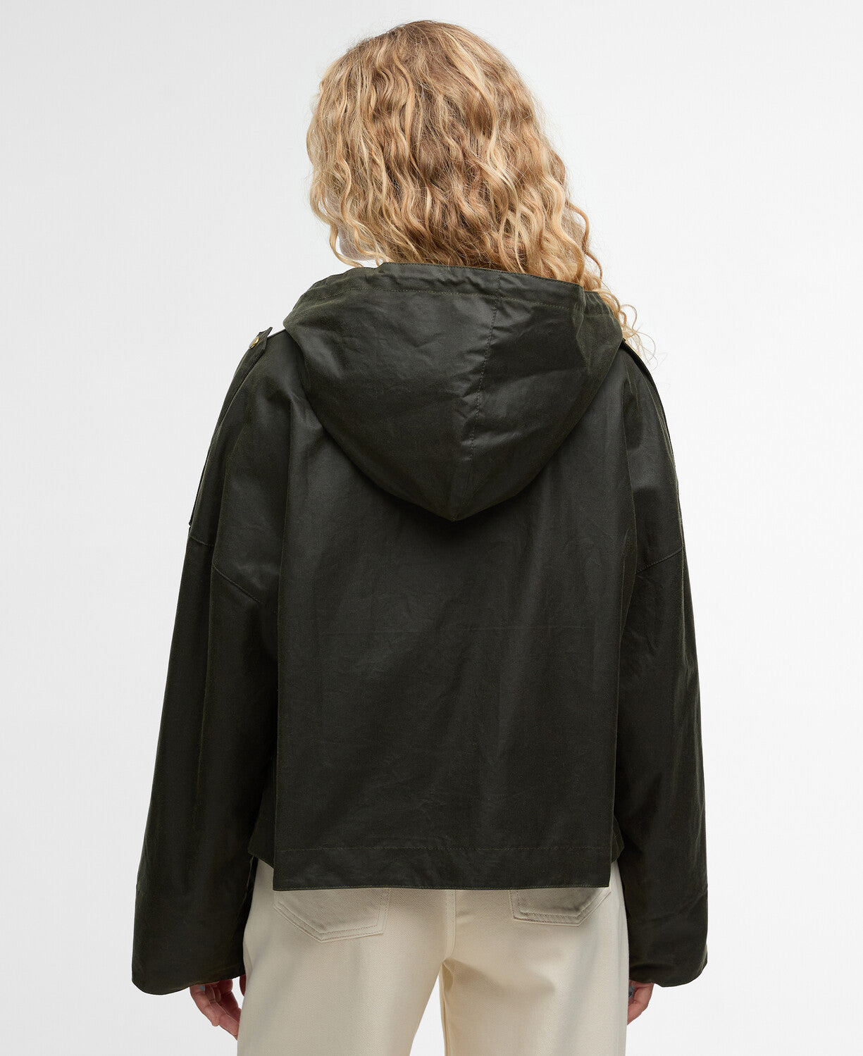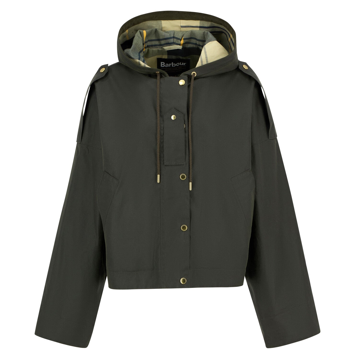 The Barbour Ryedale Waxed Jacket is expertly made from 100% cotton, offering practicality and timeless appeal. Its short silhouette includes dropped sleeves, a fixed hood, elongated epaulettes, and a studded tab front fastening. With tartan detailing at the inner cuff and lining, it’s perfect styled over jeans and a lightweight sweater for an effortless smart-casual ensemble.