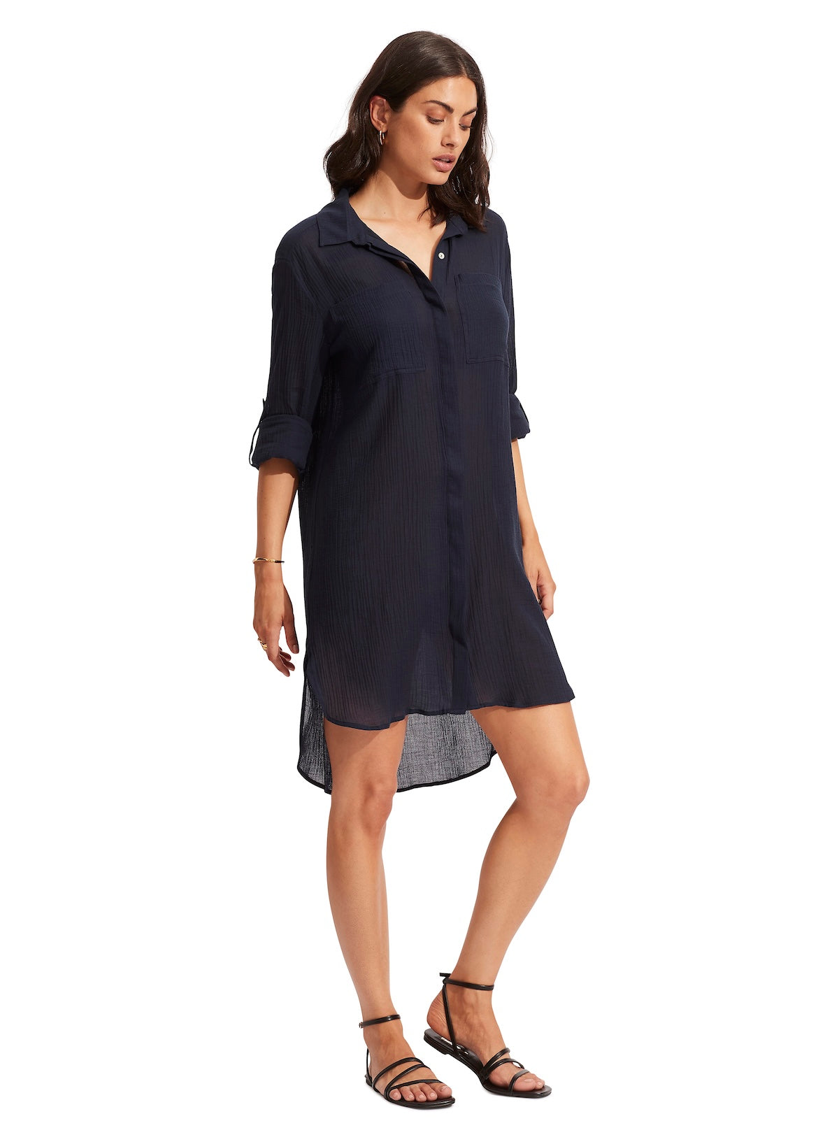 Seafolly Crinkle Twill Beach Shirt - Indigo