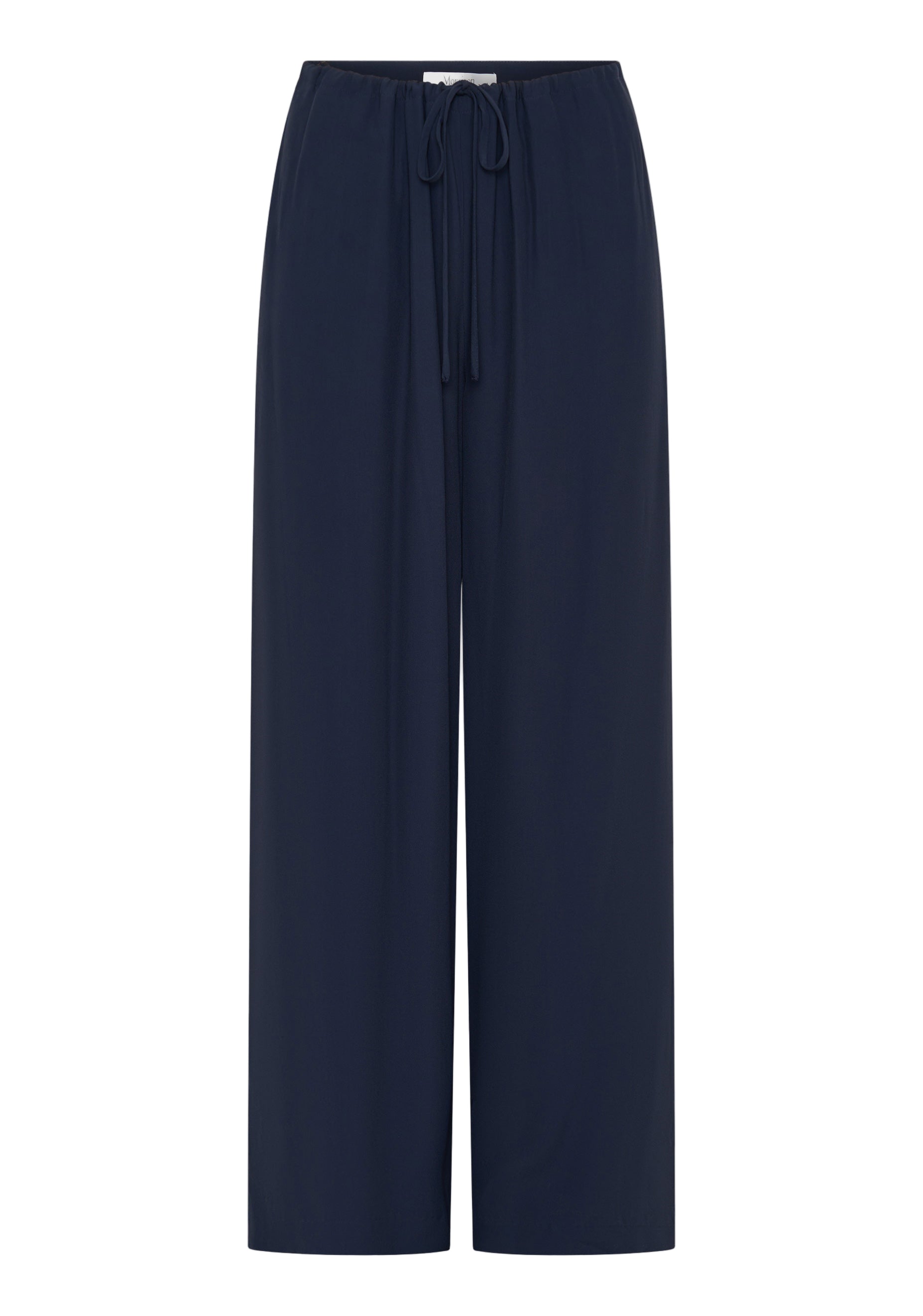 The Antigua Pant is crafted from satin-back mid weight crepe, designed with a relaxed straight leg and full length finish. An adjustable drawstring waistband, back darts, and side seam pockets combine comfort with subtle tailoring.